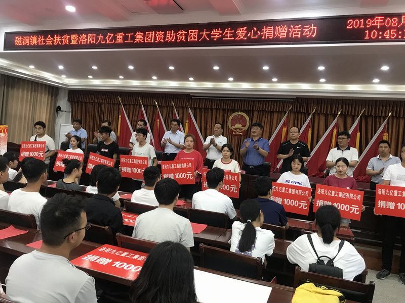 愛(ài)是與生俱來(lái)的,在血液里流動(dòng),在骨子里結(jié)晶,它源源不斷的由心而生,永不枯竭,只要人人都愿意奉獻(xiàn)一點(diǎn)愛(ài),就如甘霖沐浴大地,人間處處盛開(kāi)幸福之花! 為響應(yīng)洛陽(yáng)市政府精準(zhǔn)扶貧政策,洛陽(yáng)九億重工集團(tuán)有限公司及董事長(zhǎng)王九茂積極參與捐資助學(xué)的慈善義舉活動(dòng),特做出如下決定:1、公司幫扶磁澗鎮(zhèn)2017年新招貧困大學(xué)生21名順利入學(xué),每人資助2000元,總計(jì)肆萬(wàn)貳仟元整; 2、總經(jīng)理王九茂(縣政協(xié)委員)以個(gè)人名義資助磁澗鎮(zhèn)南窯村2017年新招大學(xué)生6名,總計(jì)12000元整; 我相信,在社會(huì)各界的大力支持和共同努力下,我們的“愛(ài)心助學(xué)”活動(dòng)將會(huì)惠及到更多的同學(xué),為了夢(mèng)想,刻苦讀書(shū)、報(bào)銷(xiāo)祖國(guó),廣大同學(xué)也一定會(huì)在溫暖的社會(huì)大家庭里茁壯成長(zhǎng),必將成為國(guó)家建設(shè)的有用之才! 洛陽(yáng)九億重工集團(tuán)有限公司 董事長(zhǎng):王九茂